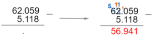 Example: Evaluate 62.059 – 5.118